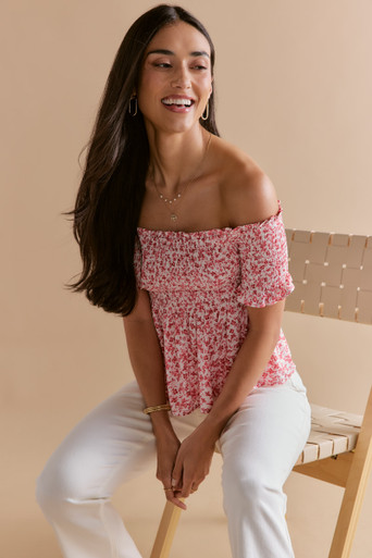 Floral Off The Shoulder Smocked Top