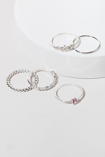 Mixed Style Silver And Crystal Ring Set