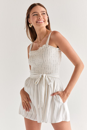 Smocked Bow Waist Striped Romper