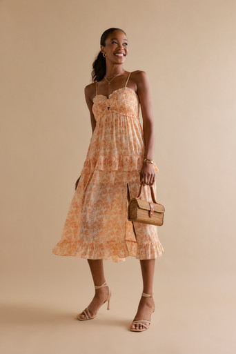 Smock Top Tiered Floral Midi Dress