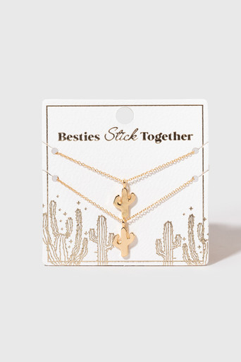 Stick Together Cactus Pendant Gold Carded Necklace Set