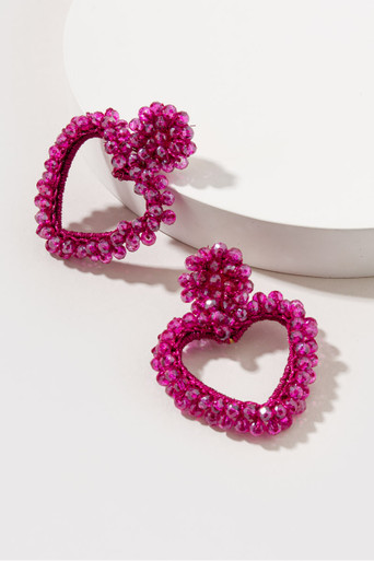 Large Open Heart Beaded Earrings