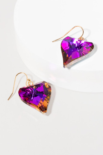 Large Iridescent Crystal Heart Earrings